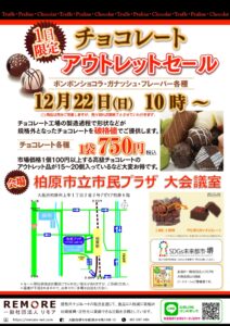 12月22日(日)に柏原市の「柏原市立市民プラザ」様でチョコレートセールを開催いたします!!